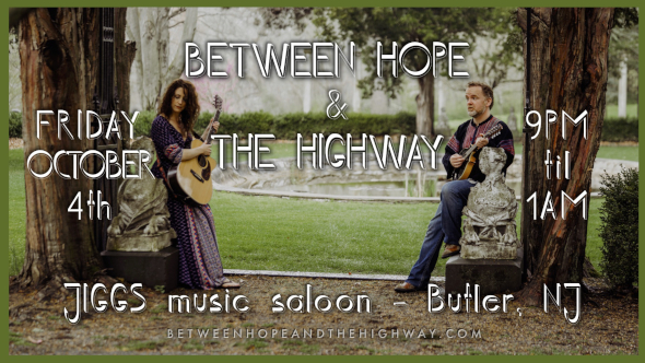 Between Hope & The Highway is the collaboration of singer-songwriters Regina Goldy and Tim Coyle. The northwest New Jersey-based duo has been performing together since 2016. Their repertoire incorporates each writer’s original music, and adaptations of favorite songs from their childhood roots to modern pop. The original music they are creating together combines melodies that sneak inside your brain, with richly textured instrumental and vocal harmonies that carry you from the front porch to the beach to the symphony hall. Their lyrics include insightful observations about everyday people and relationships and reflections on the simple joys in life, creating moments that range from dark and intense to uplifting.